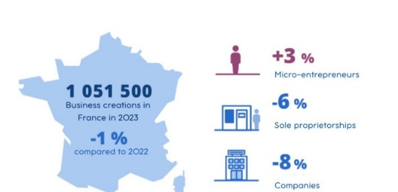 2023年法國新成立公司約有一百零七家,略低於2022年。但業務創造不斷增加,主要是在管理活動、支援服務和運輸領域。