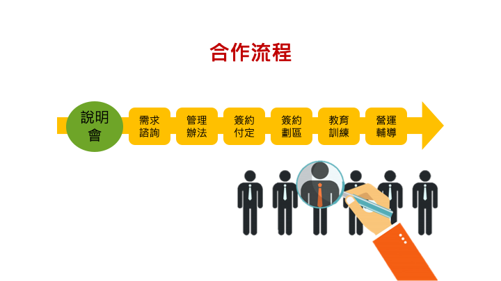 加入我們,不只提供給你產品,還有專業的服務,輔導你如何經銷,提供完整的課程讓你了解市場規模、業態現況,最後成為顧客的銷售顧問。