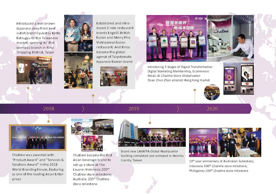 Chatime Year Established: 2004 Category: Bubble Tea & Drinks,Bakery Stores in Taiwan: 27 Stores in Oversea: 51 cities,2500 Stores Franchise Type: Single Store ,Master Franchise Website