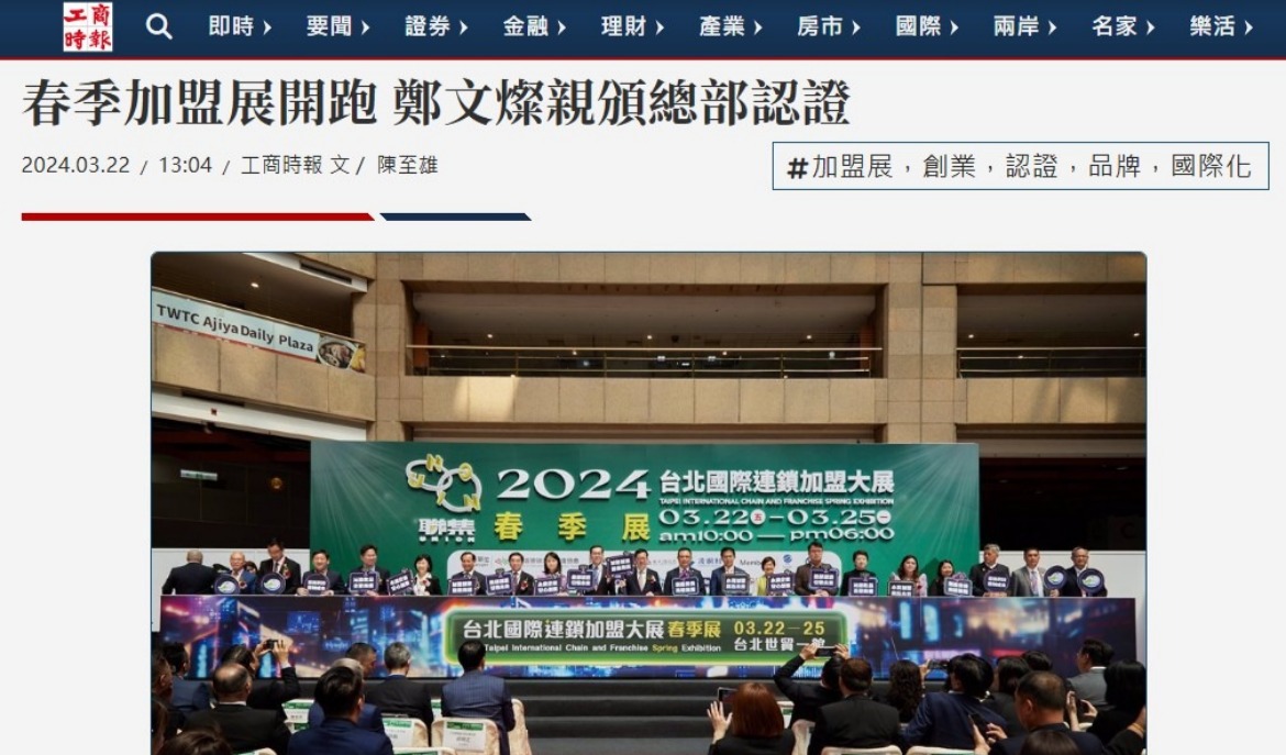 【2024台北春季加盟展開跑,鄭文燦親頒總部認證「連鎖商業領航者」】