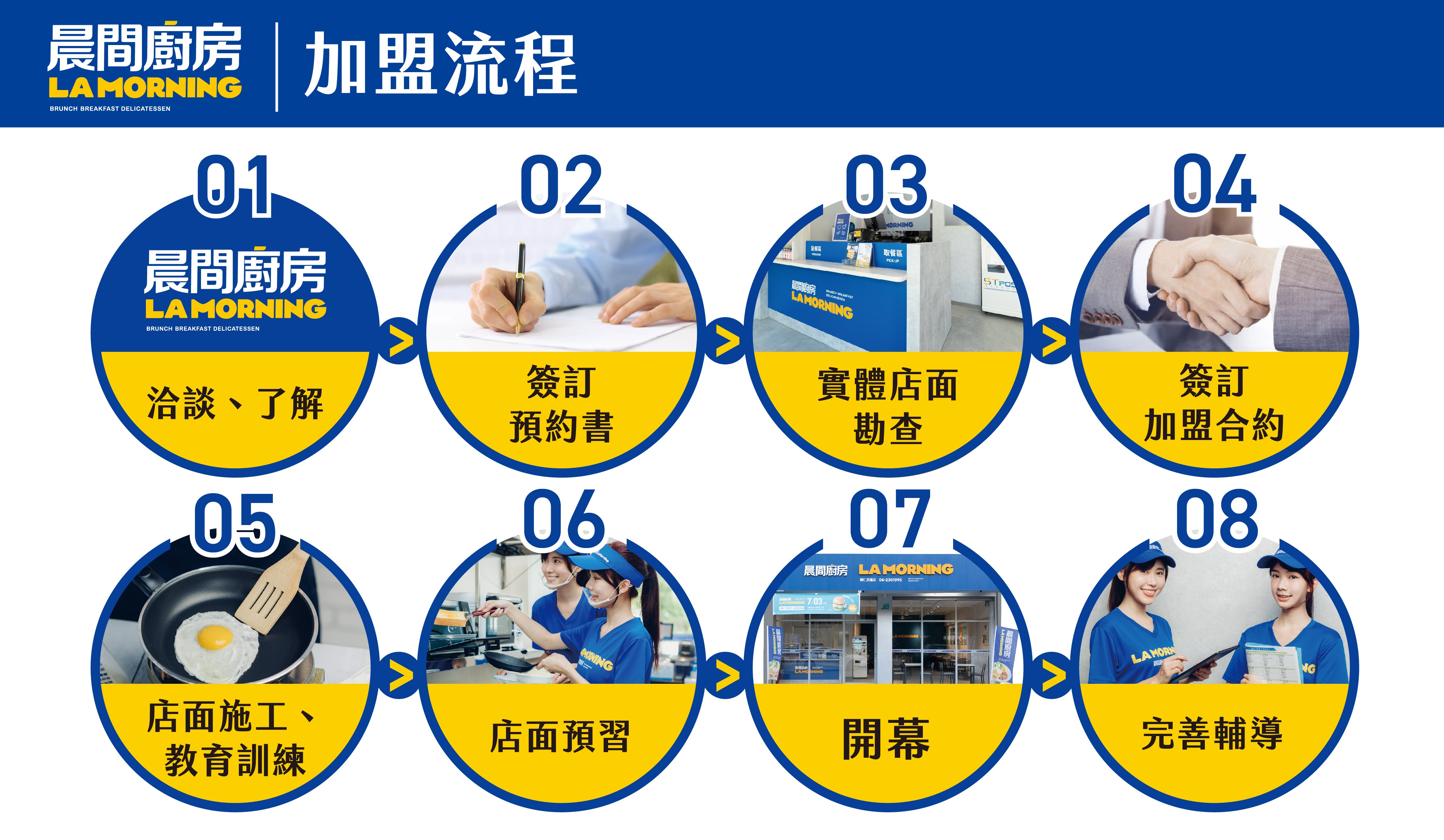 「晨間廚房」於西元 2001 年在南台灣創造了西式早午餐的休閒流行風潮,引起熱烈迴響。我們一再提升品質與創新,打造專屬於晨間廚房的經營風格。並於2008 年成立晨間廚房冷凍食品生產線以及擁有完善的後勤中心,讓消費者安心享用豐富美食。總部秉持「誠信、認真、負責」的心,努力創新;如今邁入25周年,我們貫徹創業的初衷「 真誠態度,用心經營」,對環境、餐點、服務的嚴格要求,都是我們唯一堅持的方向。高品質又賺錢的早午餐行業歡迎您的加入。