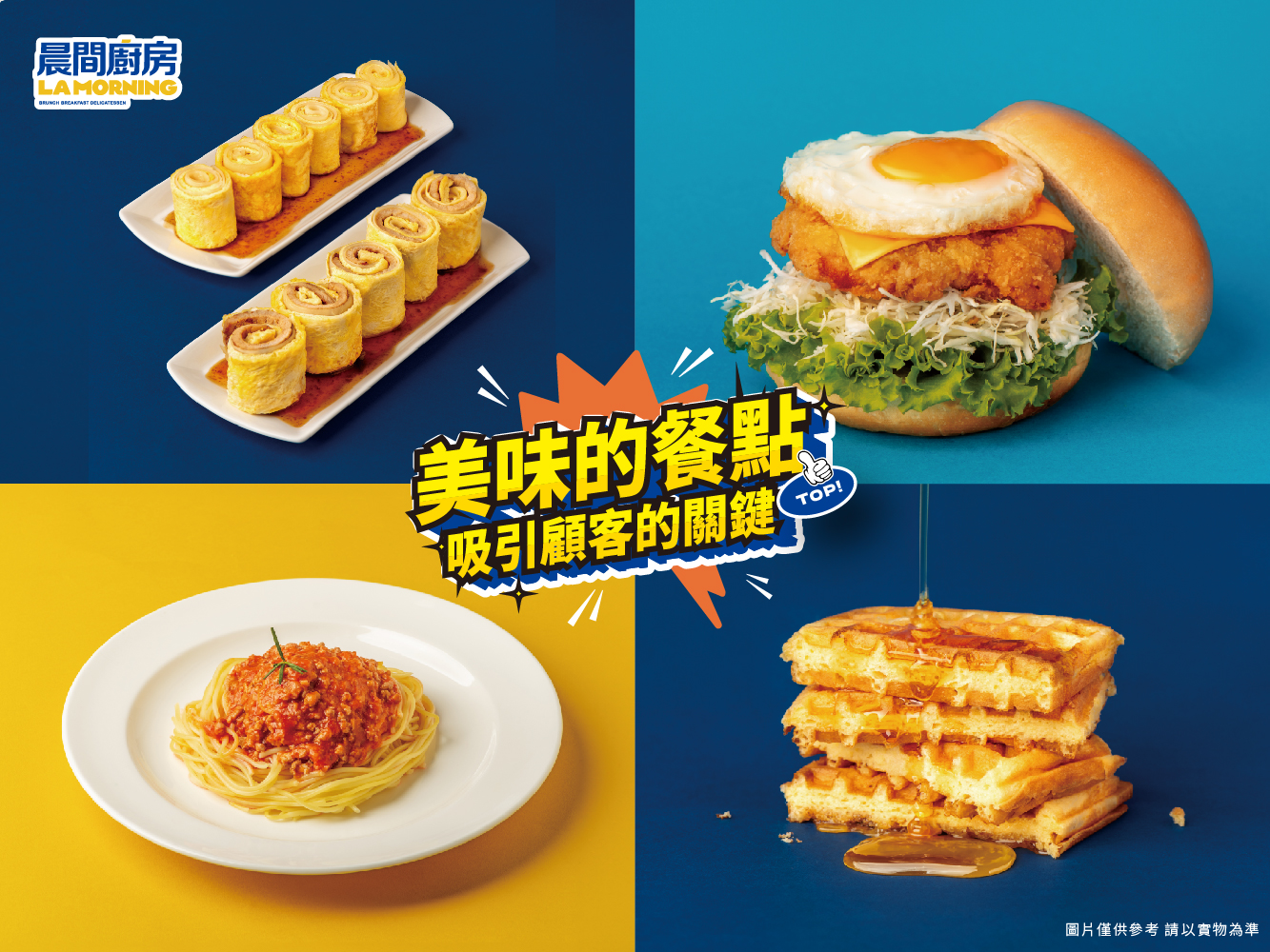 晨間廚房菜單提供各類型早餐,台式蛋餅、漢堡、鬆餅、麵類等,所有餐點原料皆由總部定期檢測、確保品質無虞。我們於彰化和屏東分別設有物流中心,確保將最新鮮的物料準時送達店內。每年皆會推出新品,也與其他知名品牌聯名,創造話題與買氣。