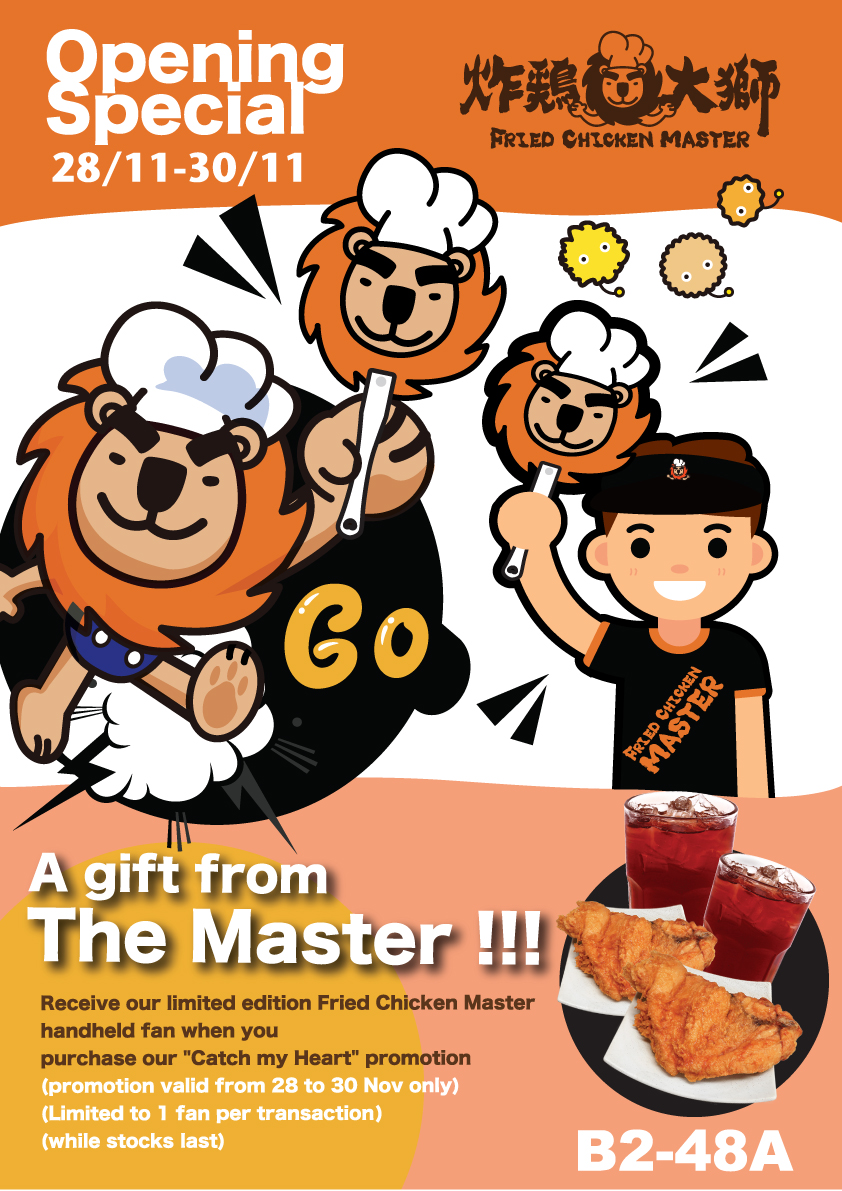 Originated from Taiwan, the Fried Chicken Master tantalizes the taste buds of gourmands with the wonderful Taiwanese fried chicken flavor. The Fried Chicken Master is a brand of Super Qin Group which is famous for its poultry processing in Taiwan. Due to the exclu-sive recipe and massage skill, the fried chicken is more tender and juicy inside, while the skin remains crispy and crunchy. Come and enjoy the joy+ fried chicken from Taiwan, cause the Fried Chicken Master only serves you Masterpiece.