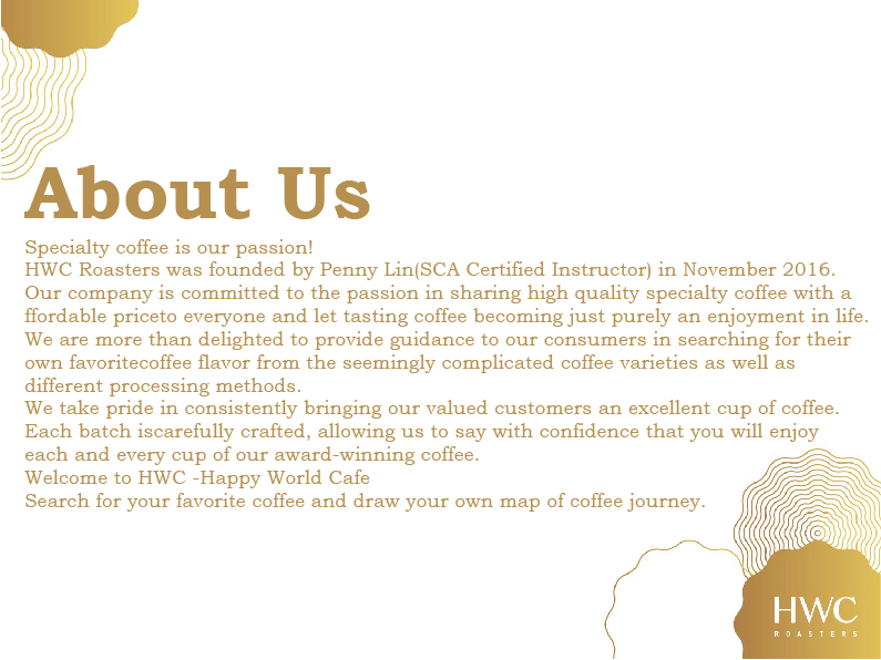 HWC Roasters Year Established: 2016 Category: Coffee Store in Taiwan: 55 Store in Oversea: Vietnam Ho Chih Minh City Franchise Type: Master Franchise Website