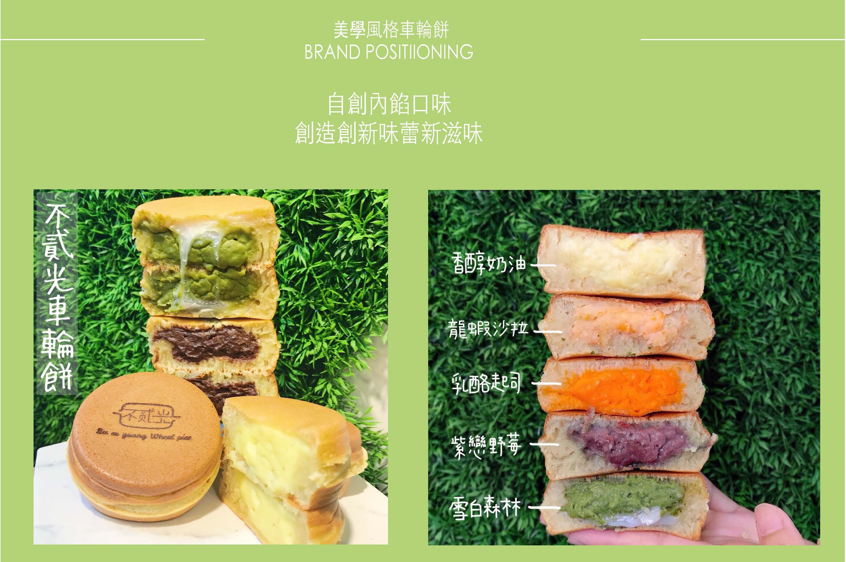 不貳光-台灣道地的⼩吃⾞輪餅⾃創品牌,創⽴初衷是將台灣道地美味結合上新世代美學下,堅持所有產品必須現做的美味、⼝感,讓愛好者在品嚐美味的同時,兼顧新鮮製作及視覺饗宴。目標成為現代“引領新式下午茶點”的指標性快銷品牌,將悠久的台灣茶點⽂化推薦給全世界。